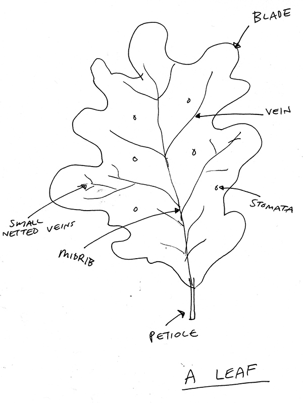Where to begin? Standing underneath a tree seems a good place. A mature tree can have over 700,000 leaves with a surface area the equivalent of three tennis courts. The leaves are like little chemical machines that make carbohydrates, or glucose, to feed the plant. It needs water, light and carbon dioxide to do this. But it doesn’t just mix them all together in a bowl like a cake and out comes food. Each is needed for a different reason. And we must remember that it’s not just big old trees that do photosynthesis. All plants are doing this. The so-called ‘weed’ carving out an existence in a pavement crack on a busy street, is doing photosynthesis too, as are microscopic phytoplankton in the sea.